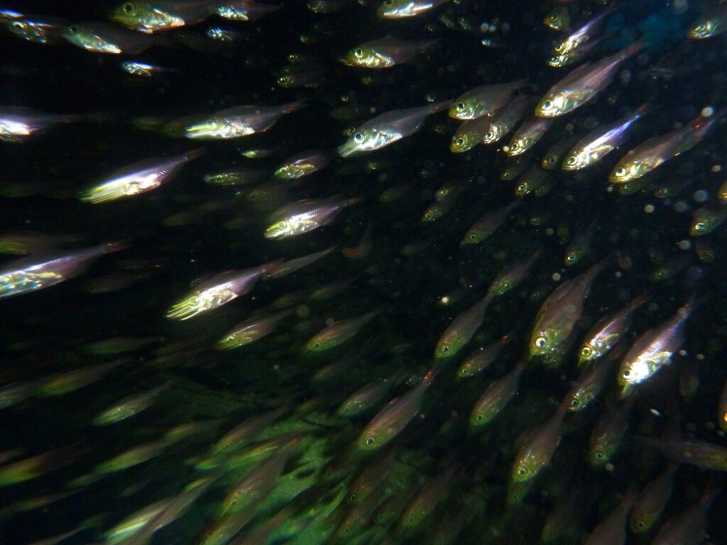 Im Außenbereich tummelten sich Fledermausfische und jede Menge blaue Füsiliere. Auch ein Barakuda gab sich die Ehre.