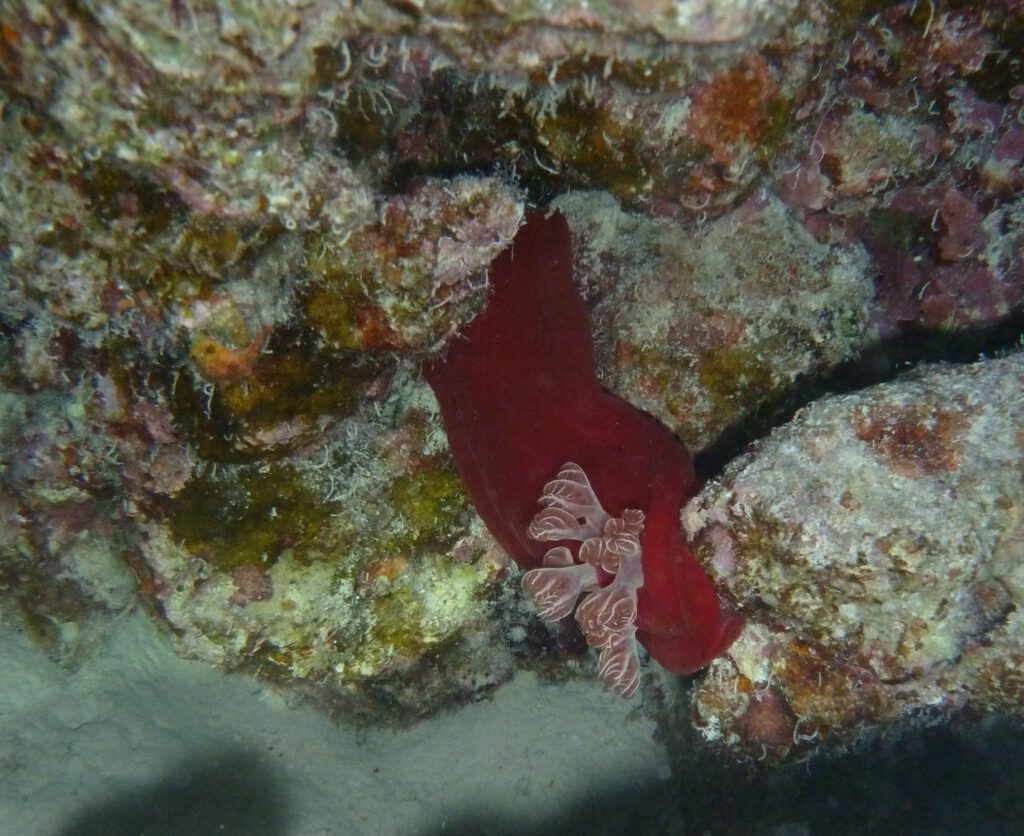 Der letzte Tauchgang war ein Nachttauchgang am Abu Nahas Reef. Hier durften wir einer spanischen Tänzerin während einer Tanzpause zusehen, was ihre Erhabenheit aber in keinster Weise schmälerte.