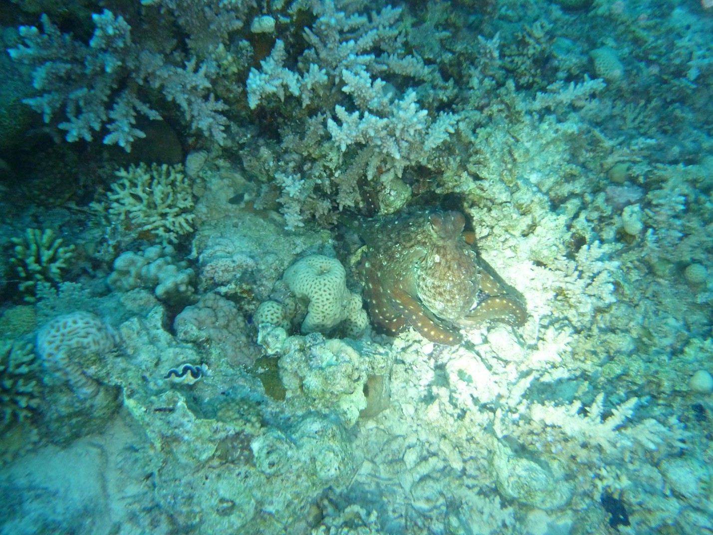 Danach ging es zum Umm Gamar. Fette Muränen, Seezungen, Octopus gesellten sich zu uns. Das Wasser zeigte sich recht launisch mit Strömung und Gegenströmung.
